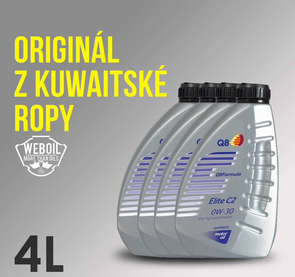 Motorový olej Q8 Formula Elite C2 0W-30 4LSkladem1 150 Kč/ ks950 Kč bez DPH