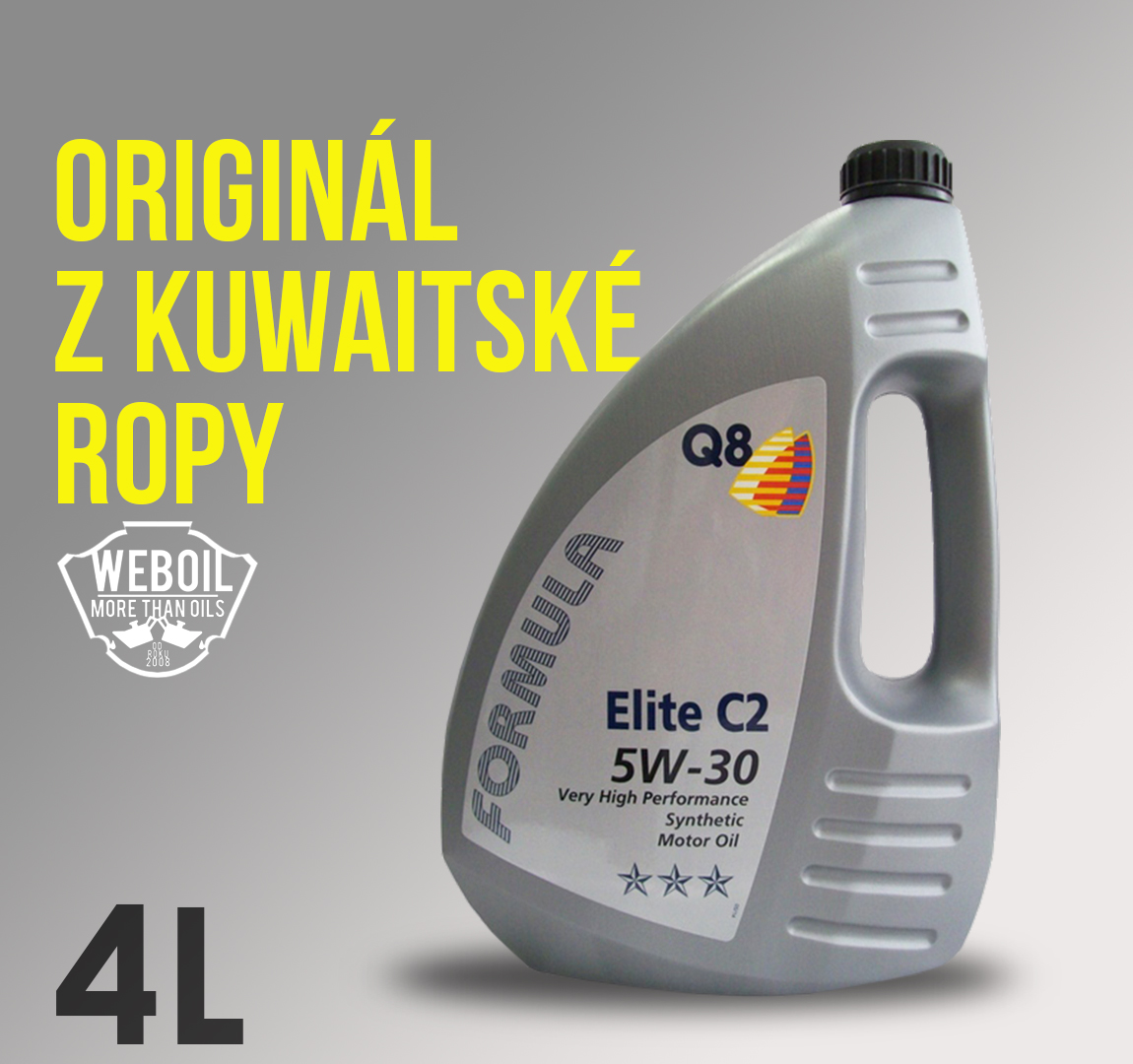 Q8 Formula Elite C2 5w-30 je syntetický, vysoce výkonný motorový olej pro vozy Peugeot a Citroën s motory Euro 4 s nebo bez DPF (filtrupevných částic). Q8 Formula Elite C2 je vhodný pro celoroční provoz v benzínových,naftových a LPG motorech osobních a dodávkových automobilůs nebo bez turbodmychadla, které vyžadují LowSAPS olej. Vhodný i pro starší motory Peugeot a Citroën.