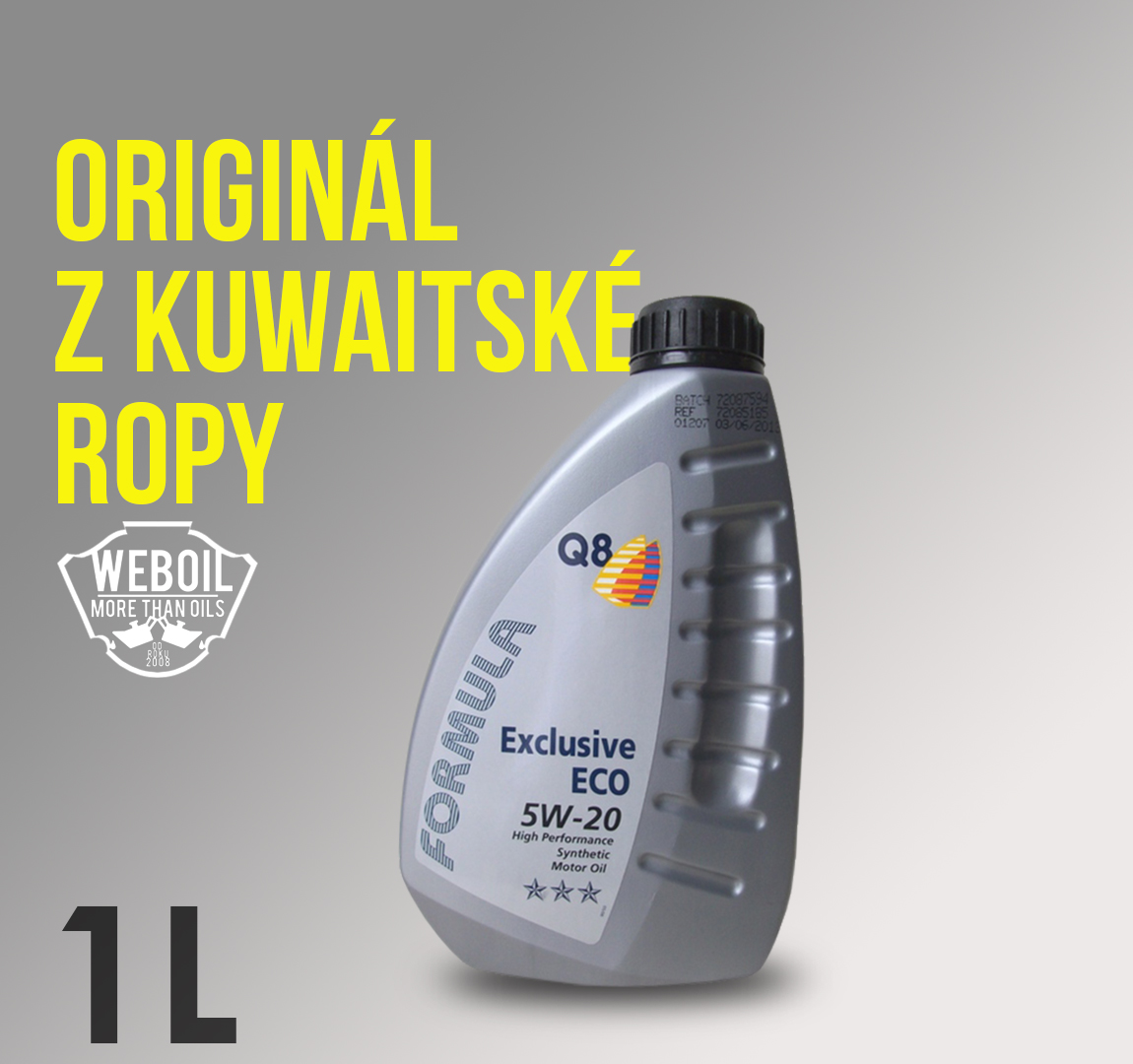 Motorový olje Q8 Formula Exclusive Eco 5w-20 je syntetický, nízko viskózní, vysoce výkonný motorový olej pro osobní automobily. Umožňuje snížení spotřeby paliva. Speciálně vhodný pro nejnovější generaci benzínových motorů Ford Ecoboost Euro 5 s přímým vstřikováním paliva. Hodí se i pro atmosférické a přeplňované benzínové, naftové a LPG motory vyžadující specifikaci Ford M2C 948-B.